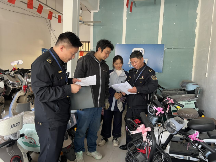 為進一步規(guī)范電動自行車市場經(jīng)營秩序,做好新標(biāo)準(zhǔn)實施準(zhǔn)備工作,確保12月1日以后不再銷售老標(biāo)準(zhǔn)電動自行車,固鎮(zhèn)縣市場監(jiān)管局楊廟所對轄區(qū)各電動自行車經(jīng)營門店開展入戶宣貫和全面排查檢查。