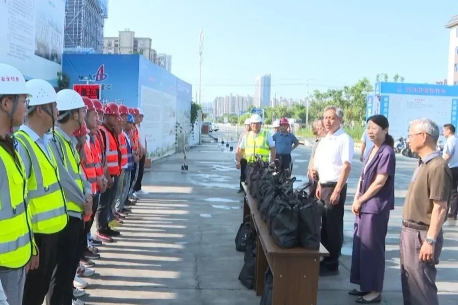 在固鎮(zhèn)谷陽產(chǎn)業(yè)園二期施工現(xiàn)場,沈明舉詳細了解工程進度,要求施工單位嚴格落實防暑降溫相關(guān)規(guī)定和安全生產(chǎn)措施,科學合理安排戶外作業(yè)時間,確保高溫天氣施工安全和工程質(zhì)量。