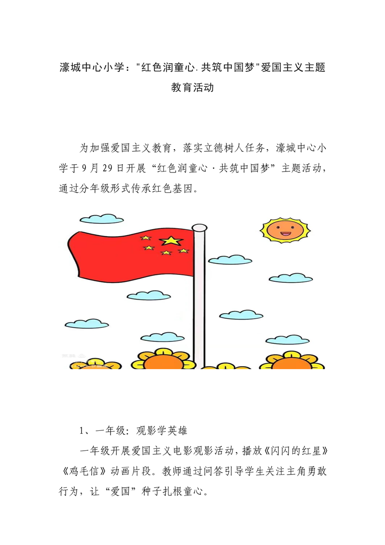濠城中心小學(xué):“紅色潤(rùn)童心,共筑中國(guó)夢(mèng)”愛國(guó)主義主題教育活動(dòng)