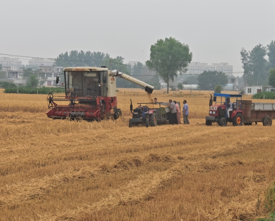 6月2日,安徽省固鎮(zhèn)縣2024年高素質(zhì)農(nóng)民職業(yè)技能大賽在該縣石湖鄉(xiāng)桑圩村舉行,參賽農(nóng)機手在麥田中展開小麥機收減損技能角逐活動。
