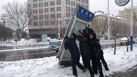 持續(xù)戰(zhàn)冰雪。為確保路段暢通,最大程度減少大雪給群眾的出行造成的影響,2月23日,城管系統(tǒng)全員上路除雪進入第三天,局領(lǐng)導(dǎo)靠前指揮,以“積雪不清,我們不歇”的工作精神,組織100余人的突擊隊,深入大營路、工業(yè)路、建業(yè)路清理路面積雪。在前兩天除雪鏟冰的基礎(chǔ)上,城管人員迎難而上,連續(xù)高強度作業(yè)10余個小時,將主路面上的積雪徹底清理干凈,最終清理出20米寬的通途大道,保障群眾出行暢通無阻。2月24日,大雪伴隨大風(fēng)再次來襲,造成沿街多處路名牌傾斜甚至倒伏,執(zhí)法人員直接開赴冰雪一線,執(zhí)法人員將已經(jīng)傾斜的路名牌或扶正、或移除,現(xiàn)場及時高效維修澮河路等處路名牌15塊,確保節(jié)日期間群眾的出行安全。