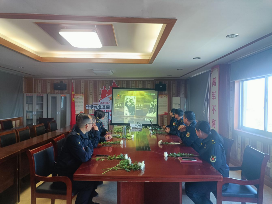 靜默寄哀思。觀影結(jié)束后,全體黨員干部職工人員肅立于會議桌前,手持一朵朵白菊,通過屏幕共同低首緬懷,向革命先烈們集體默哀三分鐘,以最樸素的方式,向為國家和人民獻出生命的英烈們致以深切哀悼,深切表達對英烈的敬仰與追思,緬懷革命先烈為民族獨立、人民解放所作出的巨大犧牲,表達城管人繼承英烈遺志、立足崗位作貢獻、保障民生服務(wù)一線的決心,把對英烈的緬懷轉(zhuǎn)化為推動城市管理工作高質(zhì)量發(fā)展的實際行動。
