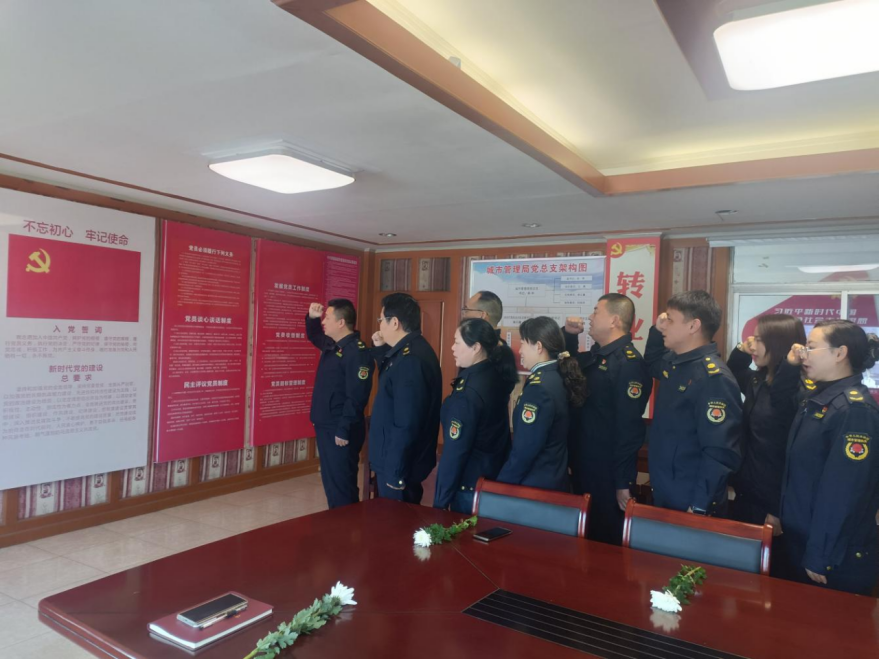 誓言礪初心。默哀儀式后,局機關(guān)黨支部書記王勇帶領(lǐng)全體黨員面對會議室中的黨旗,莊嚴舉起右手,攥緊右拳,重溫入黨誓詞。“我志愿加入中國共產(chǎn)黨,擁護黨的綱領(lǐng)……”鏗鏘誓言在會議室中久久回響,透過屏幕跨越時空,這既是對革命先烈的莊嚴承諾,也是新時代城管人牢記初心使命的錚錚告白。黨員干部職工們紛紛,在清明這個特殊節(jié)點重溫誓詞,字字千鈞,作為新時代城管人,我們要把英烈精神轉(zhuǎn)化為服務(wù)民生的實際行動。