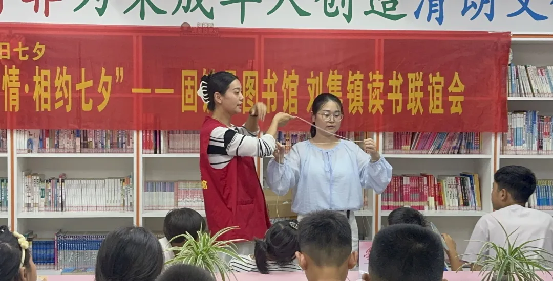 七夕乞巧,書(shū)香可期。8月29日下午固鎮(zhèn)縣圖書(shū)館聯(lián)合劉集鎮(zhèn)舉辦了“書(shū)香傳情·相約七夕”聯(lián)誼會(huì),以多元形式讓參與者沉浸式感受七夕文化。