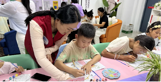 最熱鬧的要數(shù)互動(dòng)體驗(yàn)環(huán)節(jié)啦!在“穿針引線”小游戲中,重現(xiàn)古人乞巧的場(chǎng)景,參與者專注地比拼手速,既緊張又有趣;小讀者們則圍坐在一起繪制繪畫(huà)團(tuán)扇,拿起畫(huà)筆在素白扇面上勾勒星辰花鳥(niǎo)等圖案,稚嫩的筆觸里滿是對(duì)七夕文化的美好想象;編繩手工區(qū)更是歡聲笑語(yǔ)不斷,在志愿者老師的耐心指導(dǎo)下,一根根彩繩在指尖穿梭,變成了一件件精美的手工作品。大家互相交流技巧,彼此幫助,不僅學(xué)會(huì)了傳統(tǒng)手藝,更收獲了滿滿的友誼和快樂(lè)。