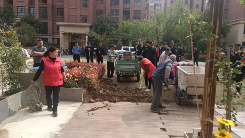 整治現(xiàn)場,執(zhí)法人員與物業(yè)人員組成聯(lián)合工作組,分工明確。涉事業(yè)主主動整改,將花盆等物品搬離公共綠地區(qū)域;小區(qū)物業(yè)及時清運公共綠地上覆蓋的土壤,執(zhí)法人員現(xiàn)場維持秩序,保障各環(huán)節(jié)有條不紊地進行。此次行動共出動執(zhí)法人員20余人,清運土壤5車,恢復(fù)公共綠地10平方米,守護住了小區(qū)公共綠地“呼吸系統(tǒng)”。