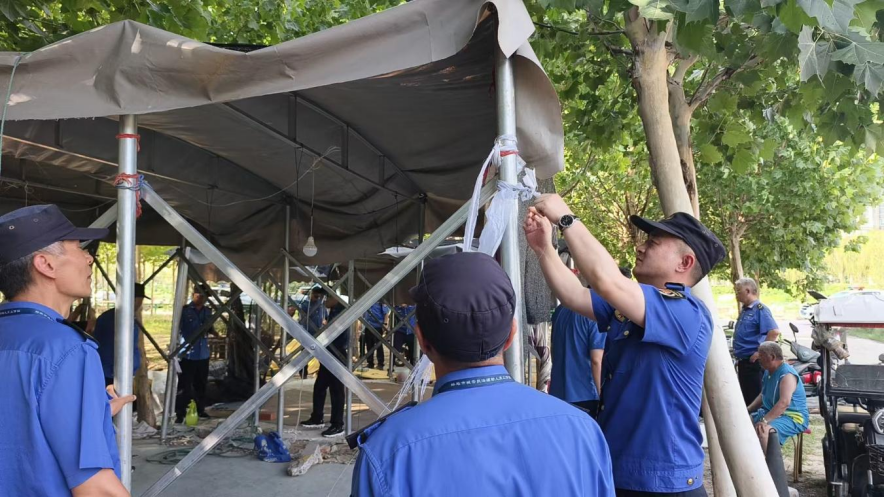 城管藍(lán)排查公園設(shè)施 拆違還綠“適老”新空間
